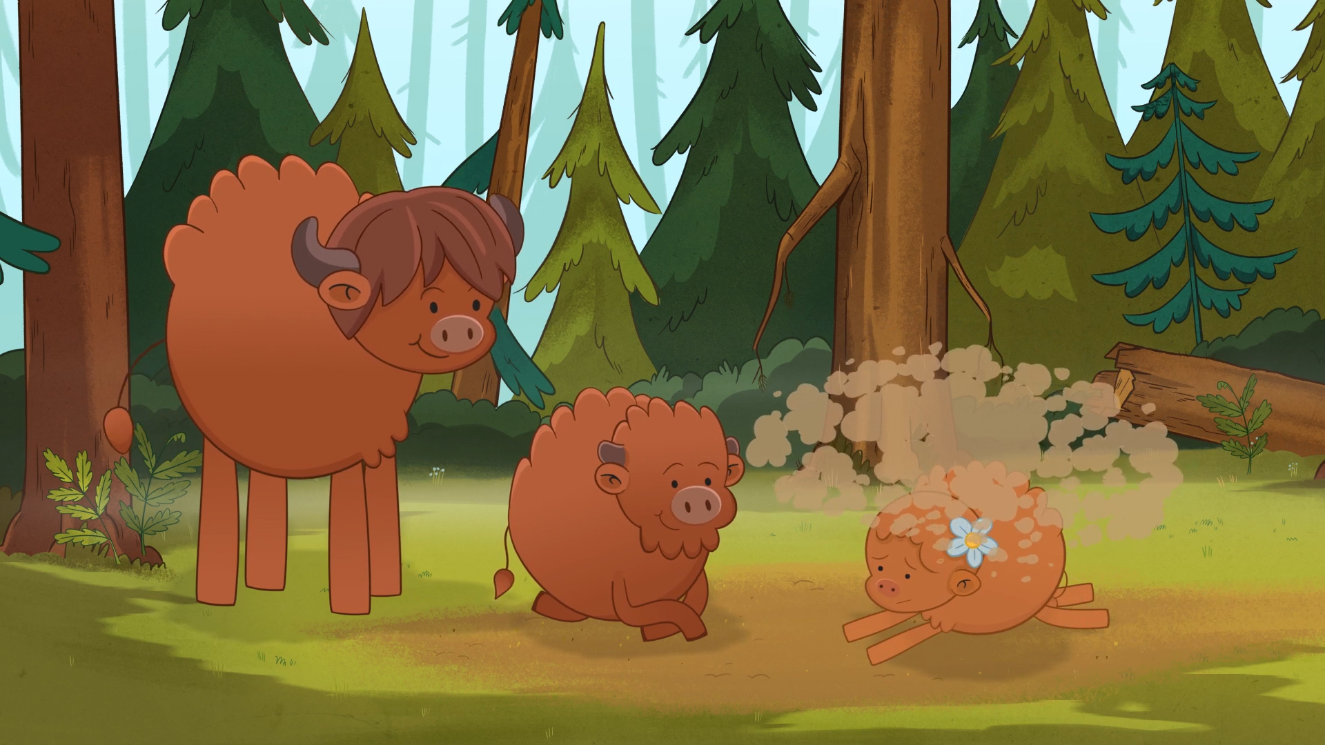 Somewhere in the depths of a large, wild, green forest lives the bison Pompik. Actually, he is a tiny bison Pompik: compared to other bison, he is small and not as strong, fast or brisk as his peers. He is not very good at traditional bison play: horn-thrusting, bumping into trees or the bison tag around the clearing. But he has other interests, in fact, Pompik is the most inquisitive animal in the forest.