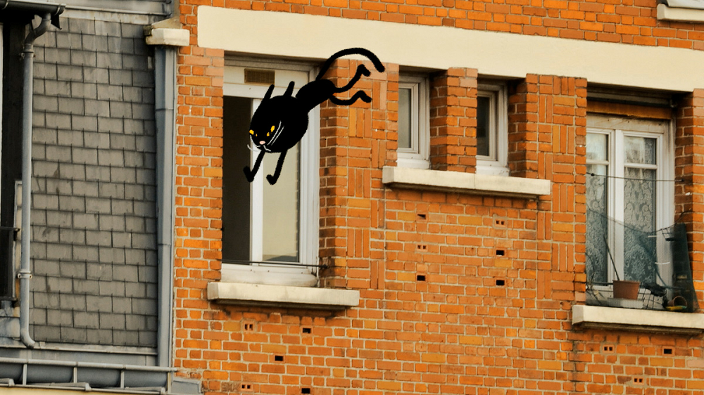 Minoule, a black cat, spends his days lying on the windowsill, high above the roof of a brick tenement house. The song of a canary locked in a cage awakens the hunter's instinct in the alley cat. However, getting to the winged snack will prove to be quite a challenge for the cat.