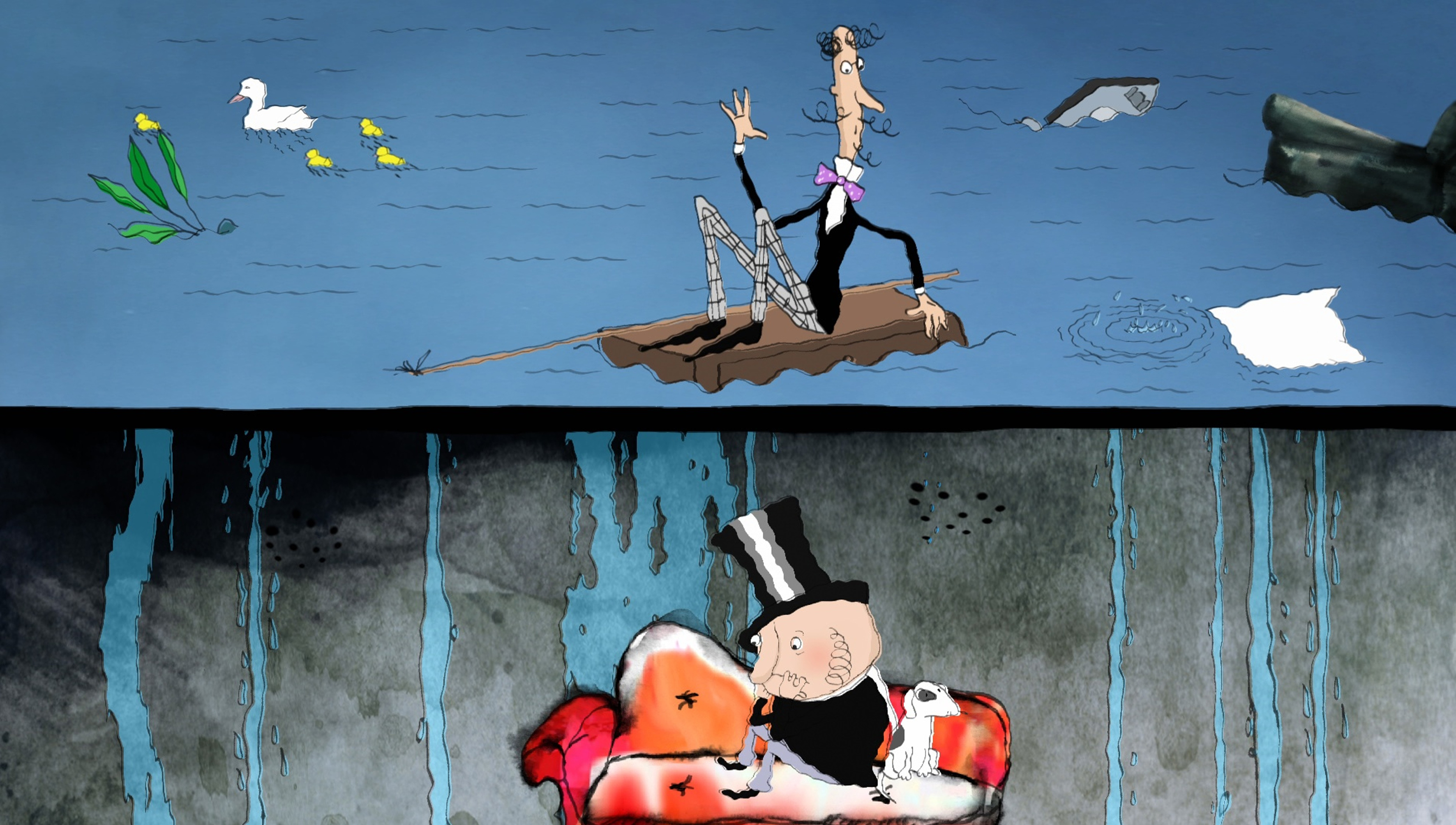 Paweł and Gaweł lived in one house; Paweł upstairs, and Gaweł downstairs. They were neighbors of two extremely different temperaments: Paweł was peaceful, he did not bother anyone while Paweł kept coming up with wild shenanigans. Repeatedly, Paweł asked his neighbor to be civil, but Paweł replied that he could do what he wanted in his own home. Desperate, Paweł returned upstairs and endured the cumbersome behavior of his neighbor. Until one day… When Gaweł was still sound asleep, water began to pour from the ceiling ..
